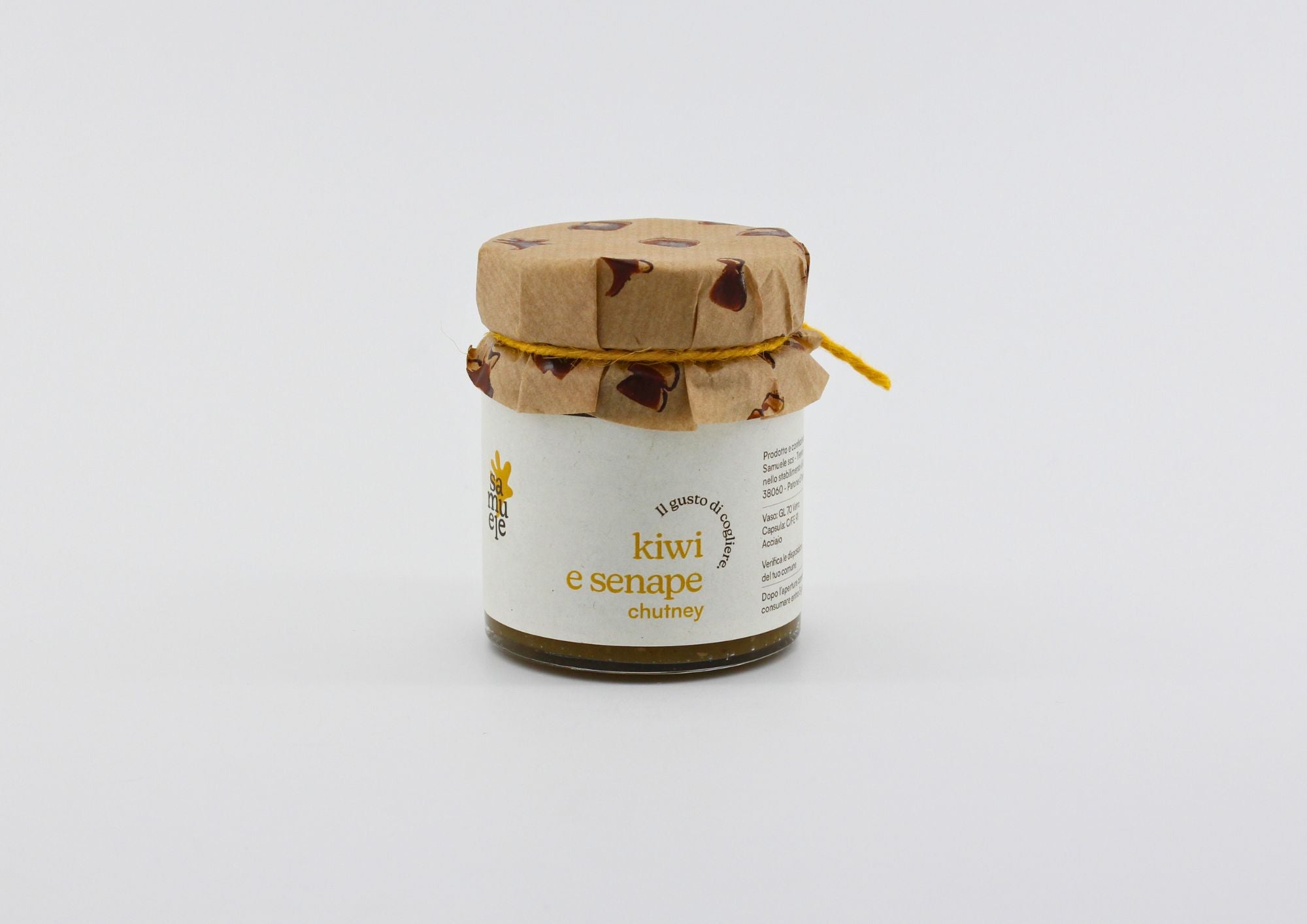 kiwi 70%, zucchero di canna, cipolle, aceto di mele, semi di senape 2%, zenzero.