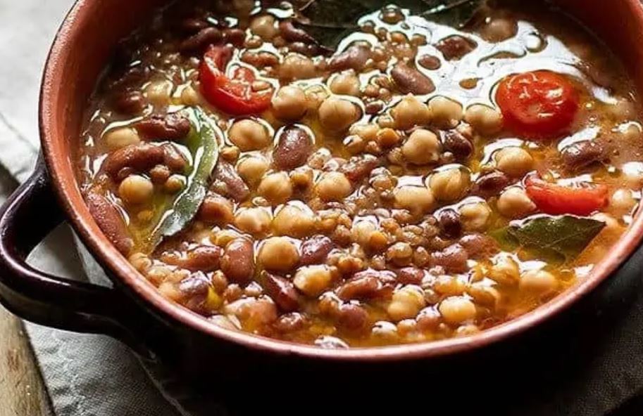 Ingredienti: Lenticchie, Ceci, Fagioli Borlotti, Fagioli Spagna, cipolla, carote, sedano, pomodoro, aglio, olio EVO, sale, pepe, peperoncino